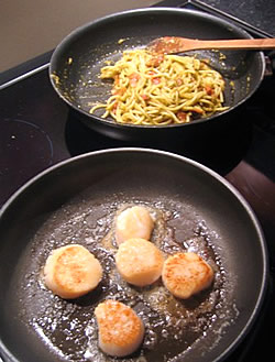 Scoici Saint-Jacques cu coriandru şi sos pesto, modul de preparare: